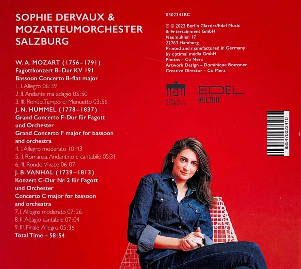 Sophie Dervaux spielt die Fagottkonzerte von Mozart, Hummel und Vanhal und leitet das Mozarteumorchester Salzburg.