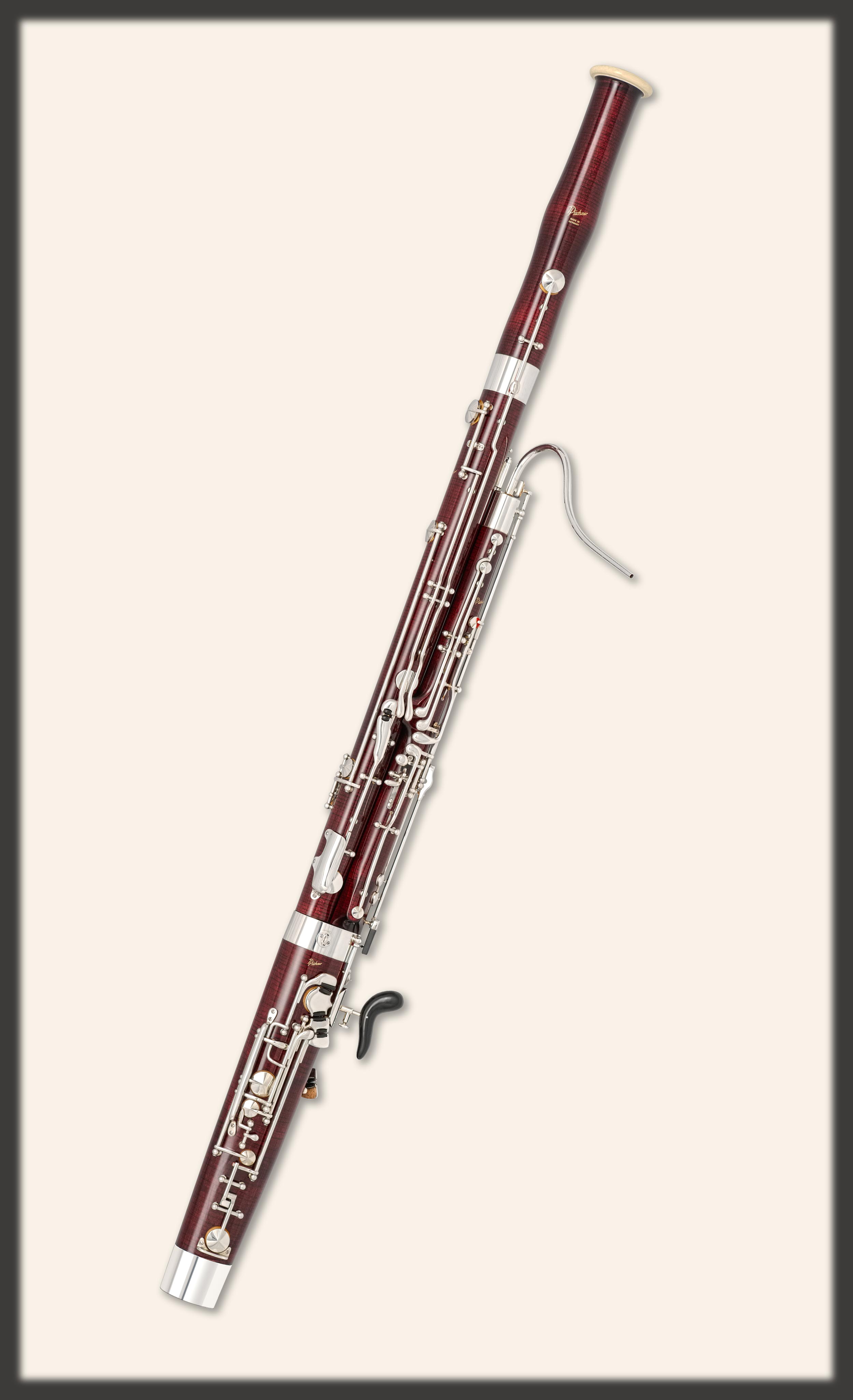 Professional. Silver-plated mechanism, automatic G ring key, high-D key, high-E key, E-F# trill, Eb key on wing joint, whisper-key mechanism operated on wing joint and self-acting from low-E key, whisper-key lock for left thumb, link between A and whisper key, Ab-Bb trill key on boot joint for right thumb, B and Bb keys on long joint held in by individual brackets;